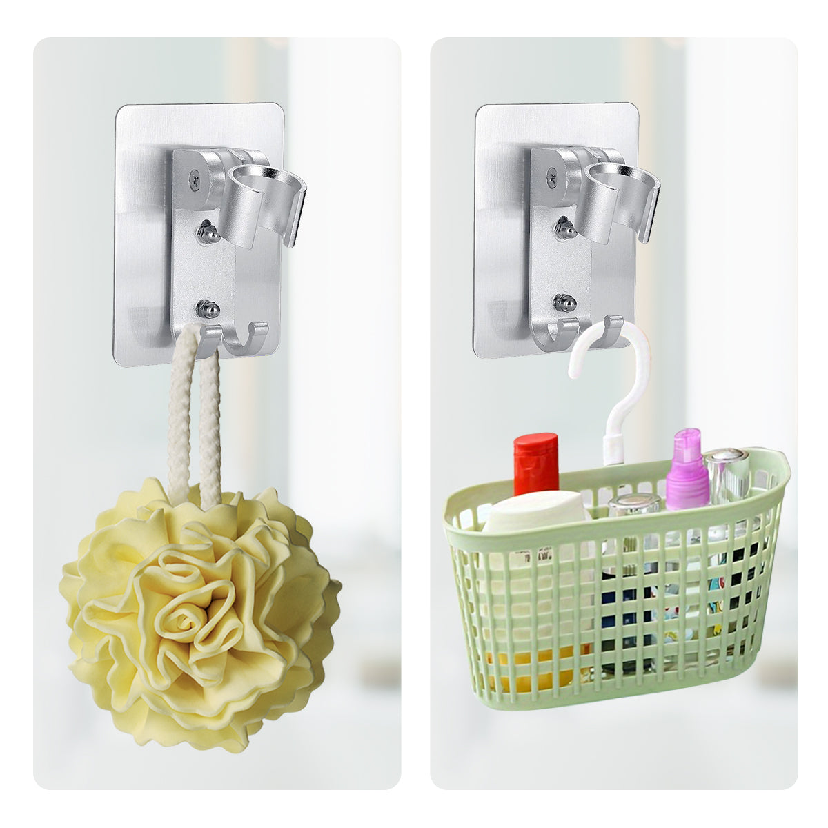 ✔️ Strong adhesive and sturdy hooks that can hold the weight of your shower head