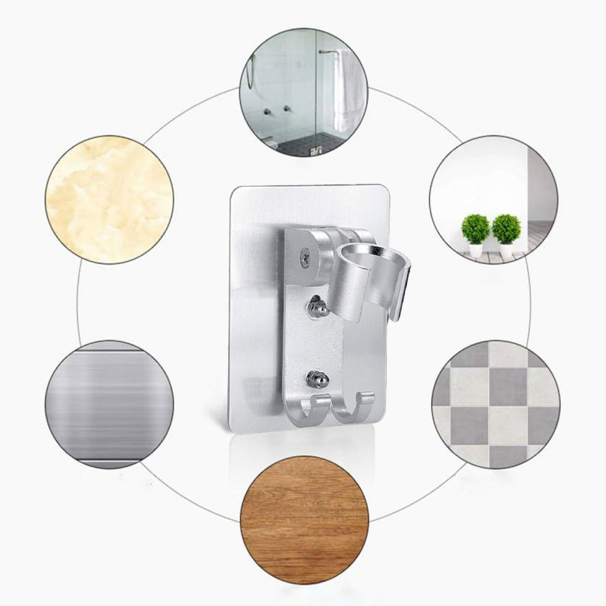 The bracket is ideal for installation on a variety of smooth, non-porous surfaces such as marble, metal panels, painted surfaces, flat ceramic tiles, and smooth glass.